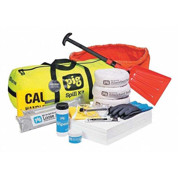 $500.00 / eachWeb priceTruck Spill Kit Duffel Bag, 10-1/2" HSKU G5940650Categories Material HandlingDescription Spill Kit, Fluids Absorbed Oil-Only, Specialized Applications Truck, Volume Absorbed Per Kit 10 gal, Container Type Portable Bag, 1 gal Container Capacity, 13 1/2 in W x 30 in L x 13 1/4 in H Container Size, Yellow, Filled, Sorbents Included (2) Pig Dry Loose Absorbent in Spill Pouch, (3) 3 in D x 48 in L Oil-Only Absorbent Socks, (30) 15 in W x 20 in L Oil-Only Absorbent Pad, 10 in W x 12 in L Pig Premoistened Hand and Surface Wipers (WIP1300)graingerSKU: 452L29, mscSKU: , zoro_no: G5940650, mongo_id: 65bbe81a9a749db822775646
