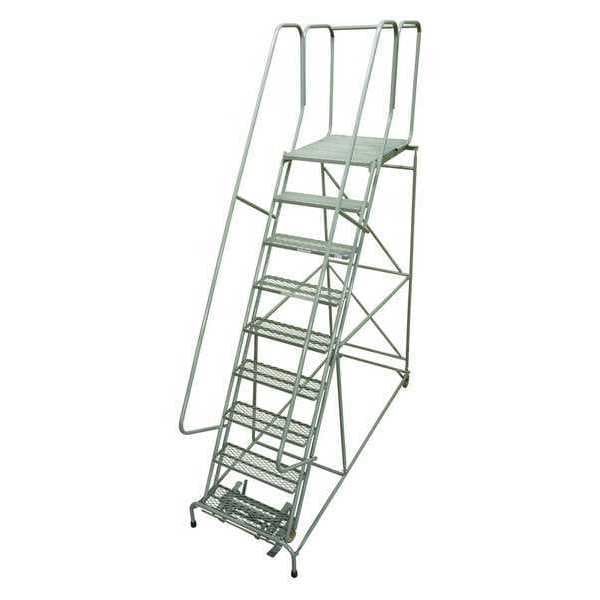 $1,558.74 / eachWeb price120 in H Steel Rolling Ladder, 9 StepsSKU G9929455Categories Material HandlingDescription Rolling Ladder, Material Steel, Platform Height 90 in, Handrails Included Yes, Handrail Height 30 in, Overall Height 120 in, Number of Steps 9, Assembled, Load Capacity 450 lb, Step Tread Expanded Metal, Platform Depth 30 in, Platform Width 24 in, Bottom Width 32 in, Base Depth 85 in, Overall Width 32 in, Climbing Angle 59 Degrees , Step Depth 7 in, Step Width 24 in, Ladder Actuation Foot Activated Step Lock, Finish Powder Coated, Color Gray, Standards ANSI, OSHA, Includes 1 in Crutch TipsgraingerSKU: 20Z436, mscSKU: , zoro_no: G9929455, mongo_id: 65bbe6903aaddbd5a903b52f
