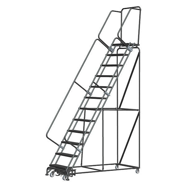 $1,756.24 / eachWeb price153 in H Steel Rolling Ladder, 12 StepsSKU G5206647Categories Material HandlingDescription Rolling Ladder, Material Steel, Platform Height 120 in, Handrails Included Yes, Handrail Height 30 in, Overall Height 153 in, Number of Steps 12, Assembled, Load Capacity 450 lb, Step Tread Abrasive Mat, Platform Depth 14 in, Platform Width 24 in, Bottom Width 32 in, Base Depth 87 in, Overall Width 32 in, Climbing Angle 59 Degrees , Step Depth 7 in, Step Width 24 in, Ladder Actuation Weight Activated Step Lock, Finish Powder Coated, Color Gray, Standards ANSI, OSHAgraingerSKU: 41LG40, mscSKU: , zoro_no: G5206647, mongo_id: 65bbe8289a749db8227794ea