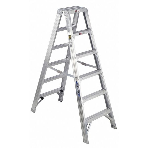 SKU G7098332Categories Material HandlingDescription Stepladder, Material Aluminum, ANSI Type IAA, Ladder Height 6 ft, Load Capacity 375 lb, Number of Steps 5, Base Spread 50 1/4 in, Bottom Width 24 3/4 in, Step Depth 3 in, Step Tread Ribbed, Series T400, Rung/Step Spacing 12 ingraingerSKU: 41D288, mscSKU: , zoro_no: G7098332, mongo_id: 65bbe8289a749db8227794a9