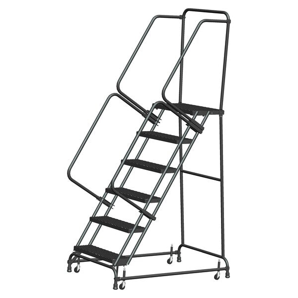 $1,357.49 / eachWeb price84 in H Steel Rolling Ladder, 6 StepsSKU G9808522Categories Material HandlingDescription Rolling Ladder, Material Steel, Platform Height 54 in, Handrails Included Yes, Handrail Height 30 in, Overall Height 84 in, Number of Steps 6, Unassembled, Load Capacity 450 lb, Step Tread Antislip Vinyl, Platform Depth 8 in, Platform Width 16 in, Bottom Width 27 in, Base Depth 48 in, Overall Width 27 in, Climbing Angle 59 Degrees , Step Depth 8 in, Step Width 16 in, Ladder Actuation Weight Activated Step Lock, Finish Powder Coated, Color Red, Standards ANSI, OSHA, Includes Double HandrailsgraingerSKU: 6LYG4, mscSKU: , zoro_no: G9808522, mongo_id: 65bbe6903aaddbd5a903b541