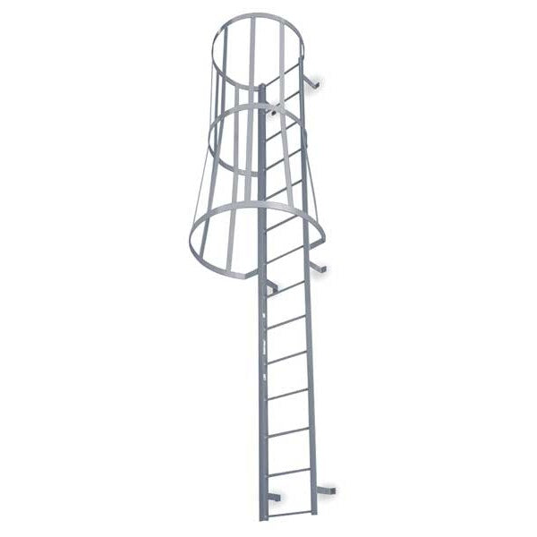$2,316.24 / eachWeb price20 ft 3 in Fixed Ladder with Safety Cage, Steel, 21 Steps, Top Exit, Powder Coated FinishSKU G2145650Categories Material HandlingDescription Fixed Ladder with Safety Cage, Walk-Thru Included No, Exit Top, Overall Height 20 ft 3 in, Overall Width 26 in, Material Steel, Load Capacity 300 lb, Number of Steps 21, Top Step Height 20 ft, Rung Dia. 3/4 in, Rung/Step Spacing 12 in, Step Width 16 in, Finish Gray Powder Coated, Standards OSHA and ANSIgraingerSKU: 4EU37, mscSKU: , zoro_no: G2145650, mongo_id: 65bbe8a322d7a989a99084c7