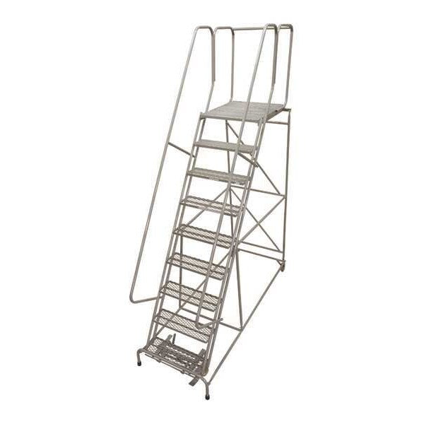 $1,743.74 / eachWeb price133 in H Steel Rolling Ladder, 10 StepsSKU G9835542Categories Material HandlingDescription Rolling Ladder, Material Steel, Platform Height 100 in, Handrails Included Yes, Handrail Height 30 in, Overall Height 133 in, Number of Steps 10, Assembled, Load Capacity 450 lb, Step Tread Expanded Metal, Platform Depth 28 in, Platform Width 24 in, Bottom Width 32 in, Base Depth 88 in, Overall Width 32 in, Climbing Angle 59 Degrees , Step Depth 7 in, Step Width 24 in, Ladder Actuation Foot Activated Step Lock, Finish Powder Coated, Color Gray, Standards ANSI, OSHAgraingerSKU: 9U719, mscSKU: , zoro_no: G9835542, mongo_id: 65bbe8a322d7a989a9908483