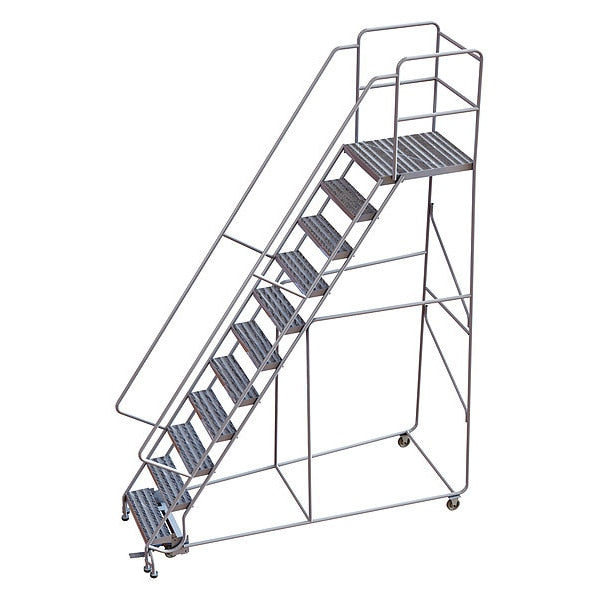 $3,677.49 / eachWeb price132 in H Steel Cantilever Rolling Ladder, 9 StepsSKU G9957963Categories Material HandlingDescription Supported, Cantilever Rolling Ladder, Material Steel, Unassembled, Handrails Included Yes, Platform Height 90 in, Platform Width 24 in, Platform Depth 40 in, Overall Height 132 in, Load Capacity 300 lb, Handrail Height 42 in, Bottom Width 41 in, Base Depth 117 in, Number of Steps 9, Climbing Angle 50 Degrees , Ladder Actuation Locking Casters, Step Depth 10 in, Step Width 24 in, Step Tread Serrated, Finish Powder Coated, Color Yellow, Standards OSHA 1910.29 and ANSI A14.7graingerSKU: 15E977, mscSKU: , zoro_no: G9957963, mongo_id: 65bbe8289a749db8227794c2