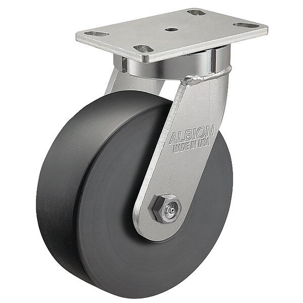 Plate Caster, Swivel, Rubber, 8 in., 670 lb.