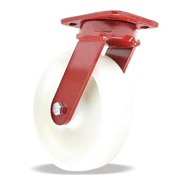 Swivel Plate Caster, Gry Nylon, 6", 660 lb., Overall Height: 7-1/2"