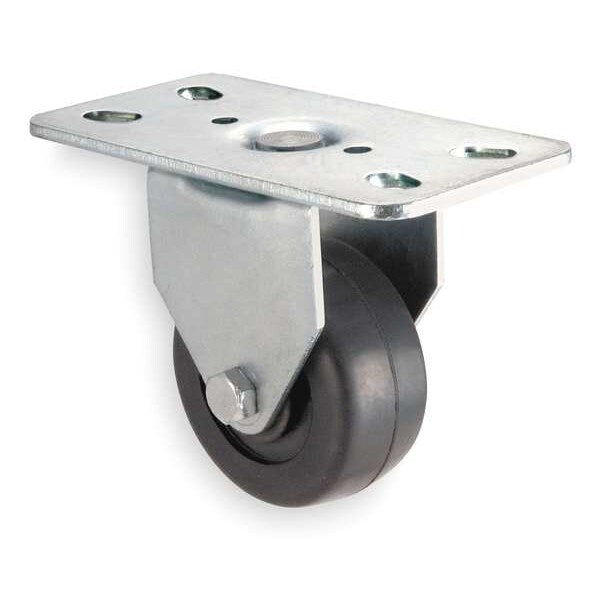 Rigid Plate Caster, Rubber, 3 in., 125 lb.