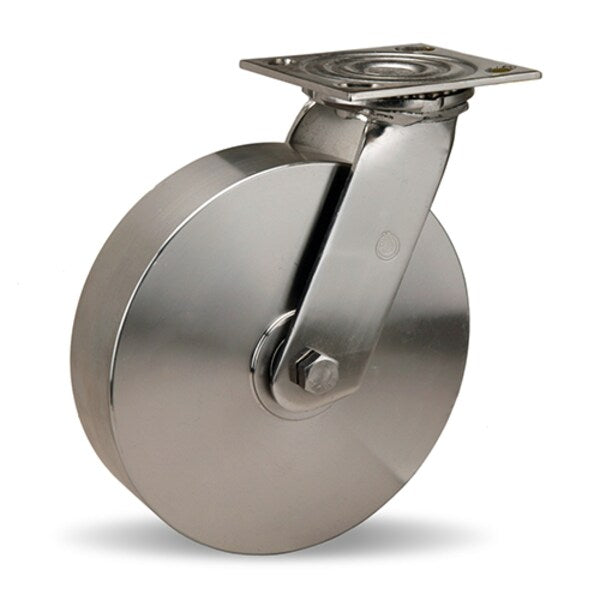 Stainless Steel Swivel Caster, 8" x 2" Stainless Steel Wheel, 3/4" Delrin Bearing