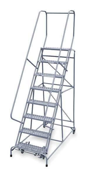 SKU G9852875Categories Material HandlingDescription Rolling Ladder, Material Steel, Platform Height 80 in, Handrails Included Yes, Handrail Height 30 in, Overall Height 110 in, Number of Steps 8, Assembled, Load Capacity 450 lb, Step Tread Antislip Vinyl, Platform Depth 10 in, Platform Width 24 in, Bottom Width 32 in, Base Depth 58 in, Overall Width 32 in, Climbing Angle 59 Degrees , Step Depth 7 in, Step Width 24 in, Ladder Actuation Foot Activated Step Lock, Finish Powder Coated, Color Gray, Standards ANSI, OSHA, Rear Exit NograingerSKU: 6ZEU5, mscSKU: , zoro_no: G9852875, mongo_id: 65bbe7fe22d7a989a98cee78