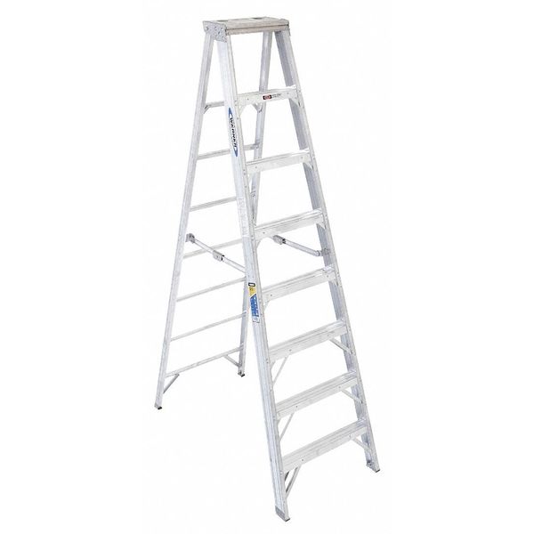 SKU G1342871Categories Material HandlingDescription Stepladder, Material Aluminum, ANSI Type IAA, Ladder Height 8 ft, Load Capacity 375 lb, Number of Steps 7, Base Spread 54 3/4 in, Bottom Width 28 in, Step Depth 3 in, Step Tread Ribbed, Series 400, Includes Drill Holster for Added Convenience, Rung/Step Spacing 12 ingraingerSKU: 4XN60, mscSKU: , zoro_no: G1342871, mongo_id: 65bbe7fe22d7a989a98cee24