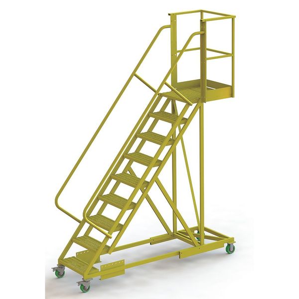$2,682.49 / eachWeb price132 in H Steel Cantilever Rolling Ladder, 9 StepsSKU G9958216Categories Material HandlingDescription Supported, Cantilever Rolling Ladder, Material Steel, Unassembled, Handrails Included Yes, Platform Height 90 in, Platform Width 24 in, Platform Depth 20 in, Overall Height 132 in, Load Capacity 300 lb, Handrail Height 42 in, Bottom Width 41 in, Base Depth 97 in, Number of Steps 9, Climbing Angle 50 Degrees , Ladder Actuation Locking Casters, Step Depth 8 1/2 in, Step Width 24 in, Step Tread Perforated, Finish Powder Coated, Color Yellow, Standards OSHA 1910.29 and ANSI A14.7graingerSKU: 15E952, mscSKU: , zoro_no: G9958216, mongo_id: 65bbe7fe22d7a989a98cee52