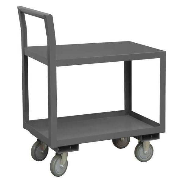 SKU G2148855Categories Material HandlingDescription Utility Cart with Deep Lipped Metal Shelves, Load Capacity 3,600 lb, Steel Material, 14 ga Gauge, Powder Coated Finish, Gray Color, Overall Length 36 in, Overall Width 24 in, Number of Shelves 2, Capacity per Shelf 1,800 lb, Distance Between Shelves 16 1/2 in, Shelf Length 36 in, Shelf Width 24 in, Includes Tubular Push Handle, Handle Height 39 in, Top Shelf Height 39 in, Assembled/Unassembled AssembledgraingerSKU: 49Y184, mscSKU: , zoro_no: G2148855, mongo_id: 65bbe87122d7a989a98f6c9a