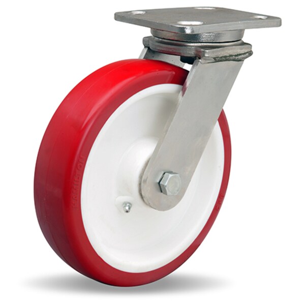 Stainless Steel Workhorse Swivel Caster, 8" x 2" Poly-Tech