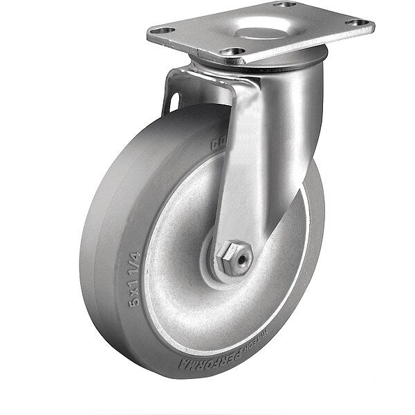 Swivel Plate Caster, PU, 5", 1100 lb., Caster Load Rating Range: Heavy-Duty