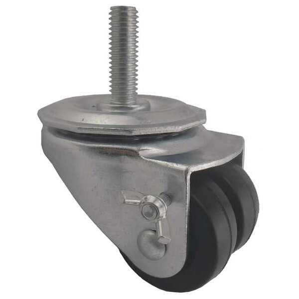 $8.88 / eachWeb priceDual Wheel Swivel Caster w/Brake, 2 in, 200 lbSKU G4805762Categories Material HandlingDescription Low-Profile Easy-Turn Threaded Stem Caster, Swivel Caster with Brake, 200 lb Load Rating, 0 to 299 lb, 2 in Wheel Dia., 7/8 in Wheel Width, Rubber Wheel/Tread Material, 2 3/4 in Mounting Height, Plain, 1/2 In.-13 x 1-1/2 in Caster Stem Size, Threaded, Steel Caster Frame Material, Zinc Plated Frame Finish, No Non-Marking, 2 Number of WheelsgraingerSKU: , mscSKU: , zoro_no: G4805762, mongo_id: 65bbe84622d7a989a98e6ea7