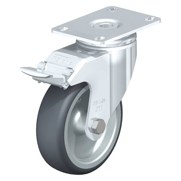 Swivel Plate Caster, TPR, 5", Brake