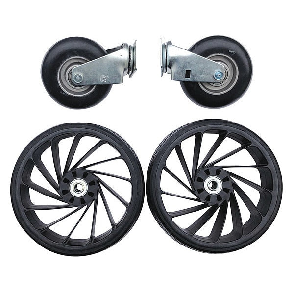 SKU G8290557Categories Material HandlingDescription Caster Set, Caster Bearing Type Ball Bearing, Caster Diameter 6 in, 10 in, Caster Height 7 1/4 in, 10 in, Caster Material Rubber, Caster Type Pneumatic, Caster Width 2 in, 3 in, Color Black, Compatible with Grainger Part Number 498X54; 35XR82; 35XR83; 498X56; 499H46; 499H48; 498X57; 499H45; 499H47; 498X55; 499H49, Compatible with Manufacturer Model No. 100; 200; 300; 400, Includes (2) 10 in x 3 in rear wheels; (2) 6 in x 2 in semi-pneumatic locking front casters, Number of Casters 4graingerSKU: 56GE26, mscSKU: , zoro_no: G8290557, mongo_id: 65bbe6393aaddbd5a9015a2c