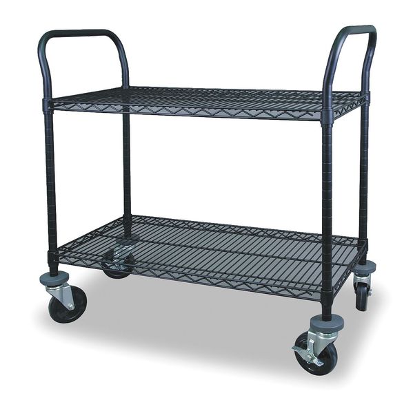 Wire Cart, 2 Shelf, 36x18x39, Black, Caster Dia.: 5"