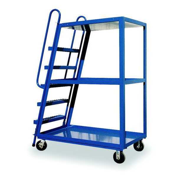 Steel Stock Picking Ladder Cart 1000 lb. Capacity, 56-1/8"L x 27-7/8"W x 73-1/16"HSKU G9814122Categories Material HandlingDescription Vertical-Access Utility Cart, Load Capacity 1,000 lb, Shelf Length 50 3/4 in, Shelf Width 27 1/2 in, Number of Shelves 3, Lip Style 4-Sided Lipped, Top Shelf Height 66 in, Distance Between Shelves 27 in, Method of Construction Welded, Top Step Height 54 in, Caster Wheel Dia. 4 in, Caster/Wheel Configuration (2) Rigid, (2) Swivel with Brake, Color Blue, Capacity per Shelf 500 lbgraingerSKU: , mscSKU: , zoro_no: G9814122, mongo_id: 65bbe6233aaddbd5a900d301