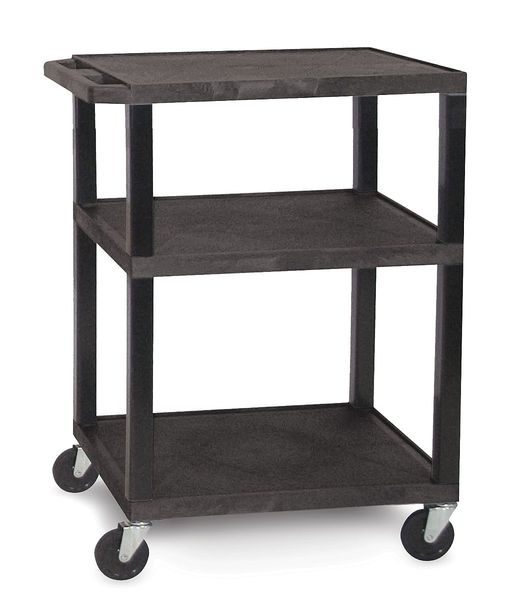 Thermoplastic Resin Utility Cart with Lipped Plastic Shelves, Flat, 3 Shelves, 300 lb