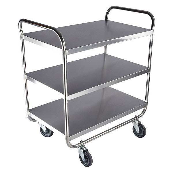 SKU G701109160Categories Material HandlingDescription Utility Cart, Load Capacity 500 lb, Stainless Steel Material, 20 ga Gauge, Polished Finish, Silver Color, Overall Length 36 in, Overall Width 23 in, Capacity per Shelf 167 lb, Distance Between Shelves 10 3/4 in, Shelf Length 33 in, Shelf Width 21 in, Distance Between Middle and Bottom Shelf 10 3/4 in, Distance Between Top and Middle Shelf 10 3/4 in, Top Shelf Height 34 1/4 in, Assembled/Unassembled AssembledgraingerSKU: , mscSKU: , zoro_no: G701109160, mongo_id: 65bbe6233aaddbd5a900d30c