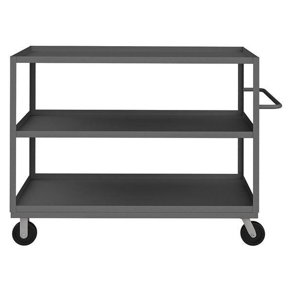 Steel Utility Cart with Lipped Metal Shelves, Flat, 3 Shelves, 3,000 lbSKU G2253408Categories Material HandlingDescription Utility Cart with Lipped Metal Shelves, Load Capacity 3,000 lb, Steel Material, 14 ga Gauge, Powder Coated Finish, Gray Color, Overall Length 66 1/2 in, Overall Width 36 1/4 in, Number of Shelves 3, Capacity per Shelf 1,000 lb, Distance Between Shelves 17 in, Shelf Length 60 in, Shelf Width 36 in, Includes 3 Shelves, Distance Between Middle and Bottom Shelf 17 in, Distance Between Top and Middle Shelf 17 in, Handle Height 36 in, Top Shelf Height 48 in, Assembled/Unassembled AssembledgraingerSKU: , mscSKU: , zoro_no: G2253408, mongo_id: 65bbe6233aaddbd5a900d300