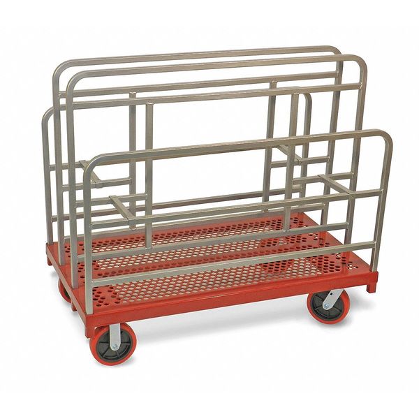 Sheet and Panel Truck, 54x30 In.SKU G2225548Categories Material HandlingDescription Single-Height Vertical Panel Truck with Adjustable Rails, Load Capacity 3,200 lb, Rail Type Adjustable, Rail Height 30 1/8 in, Lip Style Flush, Handle Type No Handle, Overall Length 54 in, Overall Width 30 in, Overall Height 38 1/2 in, Deck Construction Perforated Metal, Deck Material Steel, Deck Finish/Coating Vinyl Coated, Deck Gauge 16 ga, Deck Height 7 1/4 in, Deck Length 54 ingraingerSKU: , mscSKU: , zoro_no: G2225548, mongo_id: 65bbe7193aaddbd5a9075371