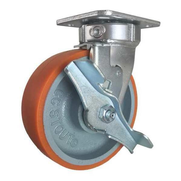 Swivel Plate Caster, w/Brake, SideStrap, 6"
