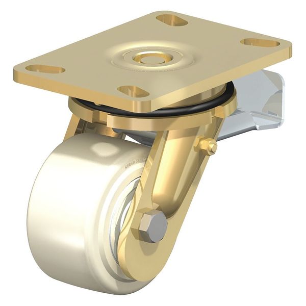 Swivel Plate Caster, Wht Nylon, 4", Brake, Load Rating: 2750 lb.