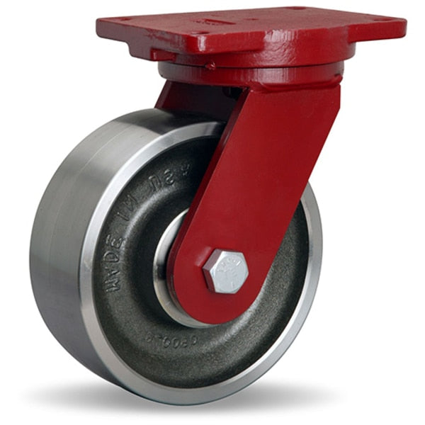 Heavy Service Swivel Caster, 5" x 2" Ergo-Glide Polyurethane (85A) on Cast Iron Wheels