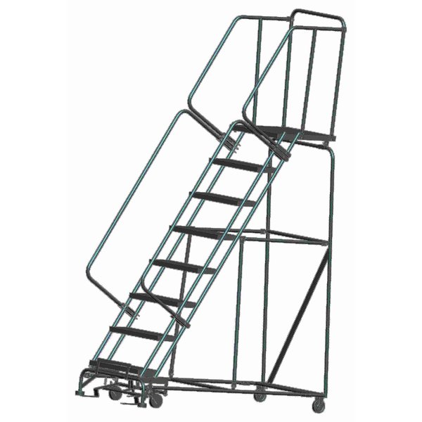 SKU G9852701Categories Material HandlingDescription Rolling Ladder, Material Steel, Platform Height 70 in, Handrails Included Yes, Handrail Height 30 in, Overall Height 100 in, Number of Steps 7, Assembled, Load Capacity 450 lb, Step Tread Antislip Vinyl, Platform Depth 12 in, Platform Width 24 in, Bottom Width 30 in, Base Depth 69 in, Overall Width 30 in, Climbing Angle 59 Degrees , Step Depth 7 in, Step Width 24 in, Ladder Actuation Foot Activated Step Lock, Finish Powder Coated, Color Gray, Standards ANSI, OSHA, Rear Exit NograingerSKU: , mscSKU: , zoro_no: G9852701, mongo_id: 65bbe6083aaddbd5a900219f