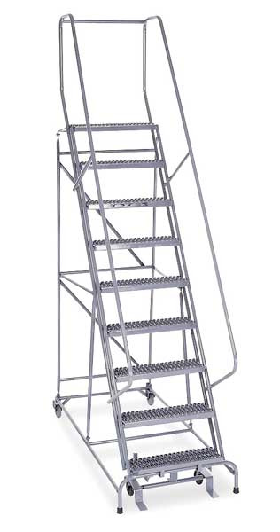 120 in H Steel Rolling Ladder, 9 StepsSKU G3492855Categories Material HandlingDescription Rolling Ladder, Material Steel, Platform Height 90 in, Handrails Included Yes, Handrail Height 30 in, Overall Height 120 in, Number of Steps 9, Assembled, Load Capacity 450 lb, Step Tread Perforated, Platform Depth 10 in, Platform Width 24 in, Bottom Width 32 in, Base Depth 120 in, Overall Width 32 in, Climbing Angle 59 Degrees , Step Depth 7 in, Step Width 24 in, Ladder Actuation Foot Activated Step Lock, Finish Powder Coated, Color Gray, Standards ANSI, OSHA, Rear Exit YesgraingerSKU: , mscSKU: , zoro_no: G3492855, mongo_id: 65bbe6083aaddbd5a90021a4