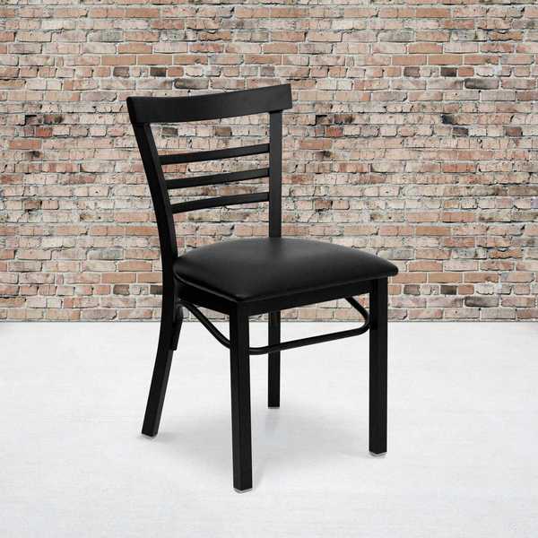 Black Three-Slat Ladder Back Metal Chair, Black Vinyl Seat, PK2SKU G2791986Categories Material HandlingDescription Black Ladder Chair-Black Seat,PK2, Package Quantity 2graingerSKU: , mscSKU: , zoro_no: G2791986, mongo_id: 65bbe65a3aaddbd5a902349a