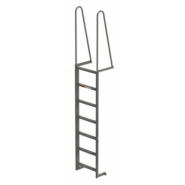SKU G2142397Categories Material HandlingDescription Fixed Ladder, Walk-Thru Included Yes, Exit Forward, Overall Height 10 ft, Overall Width 23 1/2 in, Material Steel, Load Capacity 300 lb, Number of Steps 7, Top Step Height 6 ft, Rung Dia. 1 in, Step Width 19 1/8 in, Finish Gray Enamel Paint, Standards OSHA and ANSI, Handrail Height 42 ingraingerSKU: , mscSKU: , zoro_no: G2142397, mongo_id: 65bbe6f53aaddbd5a906641d