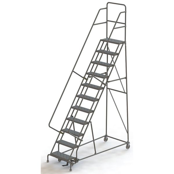 126 in H Steel Tilt and Roll Ladder, 9 StepsSKU G2139615Categories Material HandlingDescription Tilt and Roll Ladder, Material Steel, Platform Height 90 in, Handrails Included Yes, Handrail Height 36 in, Overall Height 126 in, Number of Steps 9, Unassembled, Load Capacity 450 lb, Step Tread Perforated, Platform Depth 10 in, Platform Width 16 in, Bottom Width 37 in, Base Depth 73 1/2 in, Overall Width 37 in, Climbing Angle 56 Degrees , Step Depth 7 in, Step Width 16 in, Ladder Actuation None, Finish Powder Coated, Color Gray, Standards ANSI, OSHA, Includes 10 in Semi-Pneumatic WheelsgraingerSKU: , mscSKU: , zoro_no: G2139615, mongo_id: 65bbe6f53aaddbd5a906644f