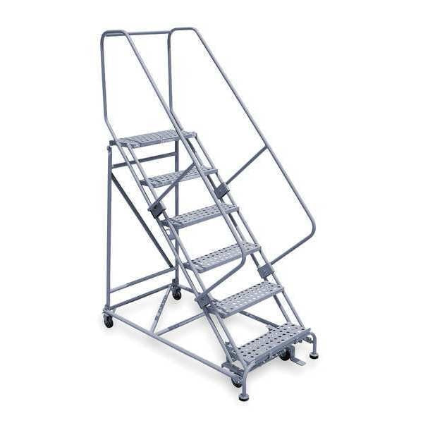 SKU G9862867Categories Material HandlingDescription Rolling Ladder, Material Steel, Platform Height 60 in, Handrails Included Yes, Handrail Height 30 in, Overall Height 90 in, Number of Steps 6, Unassembled, Load Capacity 800 lb, Step Tread Expanded Metal, Platform Depth 12 in, Platform Width 24 in, Bottom Width 30 in, Base Depth 60 in, Overall Width 30 in, Climbing Angle 50 Degrees , Step Depth 7 in, Step Width 24 in, Ladder Actuation Foot Activated Step Lock, Finish Powder Coated, Color Gray, Standards ANSI, OSHA, Includes 2-1/2 in Rubber PadsgraingerSKU: , mscSKU: , zoro_no: G9862867, mongo_id: 65bbe6f53aaddbd5a90664c3