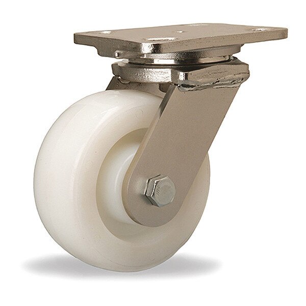 Stainless Steel Workhorse Swivel Caster, 5" x 2" White Nylon Wheel, 1/2" Sealed Precision Ball Bearing