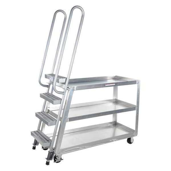$574.36 / eachWeb priceSteel Stock Picking Ladder Cart 440 lb. Capacity, 41-3/8"L x 20-1/2"W x 36-1/2"HSKU G5514126Categories Material HandlingDescription Vertical-Access Utility Cart, Load Capacity 440 lb, Shelf Length 41 in, Shelf Width 20 1/2 in, Number of Shelves 2, Lip Style Flush, Top Shelf Height 35 in, Distance Between Shelves 28 1/4 in, Method of Construction Welded, Top Step Height 31 in, Caster Wheel Dia. 4 in, Caster/Wheel Configuration (2) Rigid, (2) Swivel, Color White, Capacity per Shelf 110 lbgraingerSKU: 4ZD40, mscSKU: , zoro_no: G5514126, mongo_id: 65bbe7ca9a749db822759790