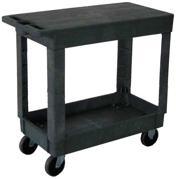 Plastic Utility Cart with Deep Lipped & Flush Plastic Shelves, Flat, 2 Shelves, 500 lb