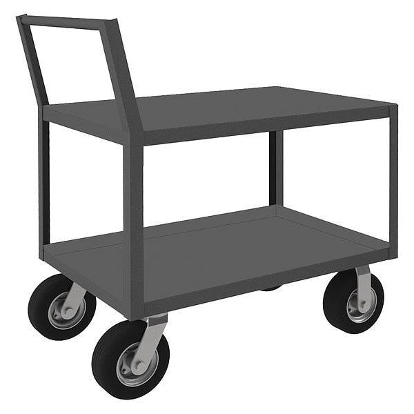 Steel Flat Handle Deep Shelf Utility Cart, 2 Shelves, 1400 lb
