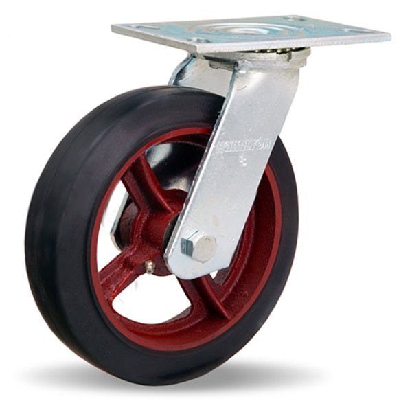 Mold-on Casters, Wide Rigid Rubber, 8"