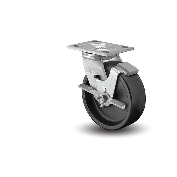 Swivel Plate Caster, w/Brake, SideStrap, 8"