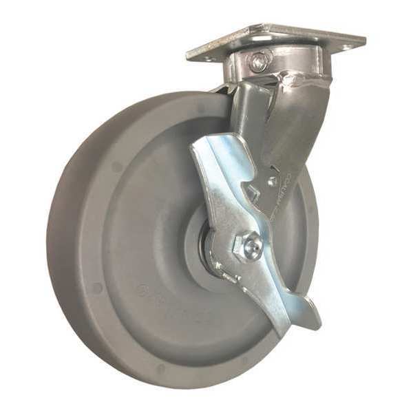 Swivel Plate Caster, Gry Nyln, 6", 1760 lb., Caster Load Rating Range: Heavy-Duty