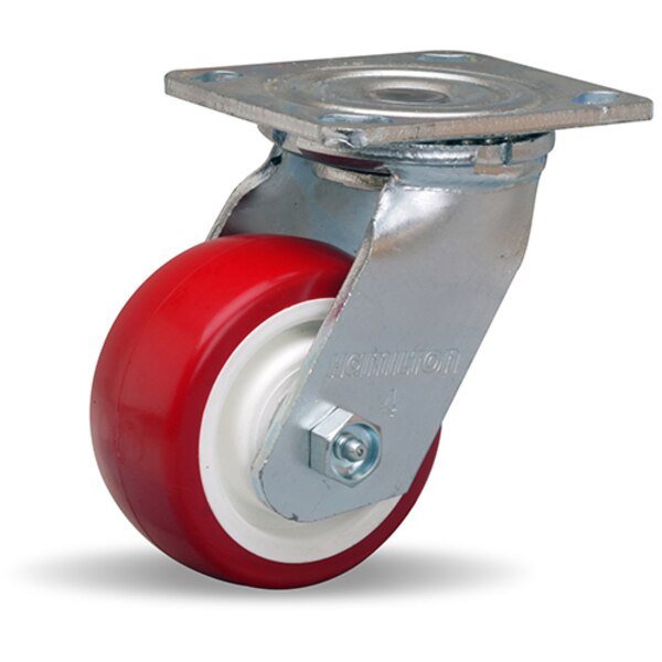 Swivel Plate Caster, PU, 4", 660 lb., Overall Height: 5.51"