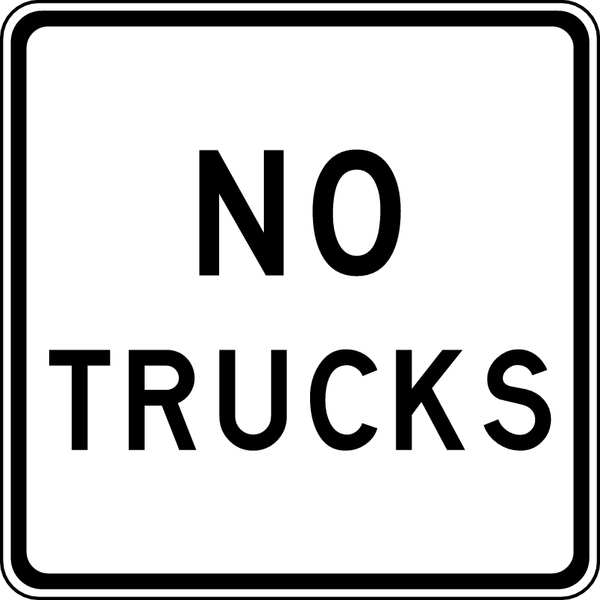 No Trucks Traffic Sign, 24 in H, 24 in W, Aluminum, Square, English, R5-2A-24HA