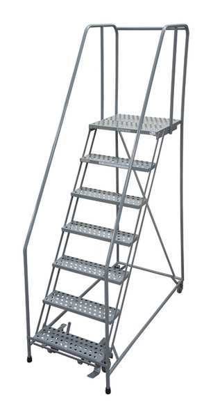 100 in H Steel Rolling Ladder, 7 StepsSKU G0995429Categories Material HandlingDescription Rolling Ladder, Material Steel, Platform Height 70 in, Handrails Included Yes, Handrail Height 30 in, Overall Height 100 in, Number of Steps 7, Assembled, Load Capacity 450 lb, Step Tread Serrated, Platform Depth 20 in, Platform Width 30 in, Bottom Width 32 in, Base Depth 63 in, Overall Width 32 in, Climbing Angle 59 Degrees , Step Depth 7 in, Step Width 30 in, Ladder Actuation Foot Activated Step Lock, Finish Powder Coated, Color Gray, Standards ANSI, OSHA, Rear Exit NograingerSKU: 21UT65, mscSKU: , zoro_no: G0995429, mongo_id: 65bbe7a79a749db82274e4f6