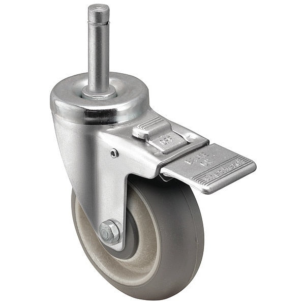 Description Stem Caster, Swivel Caster with Brake, 225 lb Load Rating, 0 to 299 lb, 3 7/8 in Wheel Dia., Thermoplastic Elastomer Wheel/Tread Material, 4 3/8 in Mounting Height, Plain, 1/2 In.-13 x 1 in Caster Stem Size, Threaded, Nylon Caster Frame Material, No Finish Frame Finish, Yes Non-Marking, 2 Number of Wheels