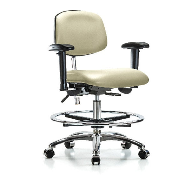 Med Bench Chair, Vinyl, CF, Cast, Wht, CL100, Caster Type: Rolling