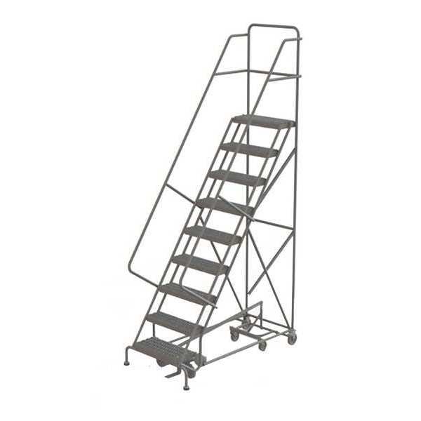 136 in H Steel Stock Picking Rolling Ladder, 10 StepsSKU G3373441Categories Material HandlingDescription Stock Picking Rolling Ladder, Material Steel, Platform Height 100 in, Handrails Included Yes, Handrail Height 36 in, Overall Height 136 in, Number of Steps 10, Unassembled, Load Capacity 450 lb, Step Tread Serrated, Platform Depth 20 in, Platform Width 24 in, Bottom Width 35 in, Base Depth 85 in, Overall Width 35 in, Climbing Angle 56 Degrees , Step Depth 7 in, Step Width 24 in, Ladder Actuation Foot Activated Step Lock, Finish Powder Coated, Color Gray, Standards ANSI, OSHAgraingerSKU: 45FG34, mscSKU: , zoro_no: G3373441, mongo_id: 65bbe7859a749db82273fffb