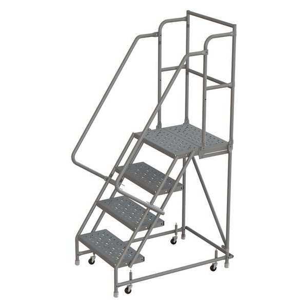 76 in H Steel Rolling Ladder, 4 StepsSKU G0639241Categories Material HandlingDescription Rolling Ladder, Material Steel, Platform Height 40 in, Handrails Included Yes, Handrail Height 36 in, Overall Height 76 in, Number of Steps 4, Unassembled, Load Capacity 450 lb, Step Tread Perforated, Platform Depth 30 in, Platform Width 16 in, Bottom Width 24 in, Base Depth 55 in, Overall Width 24 in, Climbing Angle 56 Degrees , Step Depth 7 in, Step Width 16 in, Ladder Actuation Spring-Loaded Casters, Finish Powder Coated, Color Gray, Standards ANSI, OSHA, Includes Crutch TipsgraingerSKU: 25NW41, mscSKU: , zoro_no: G0639241, mongo_id: 65bbe7859a749db82273fffd